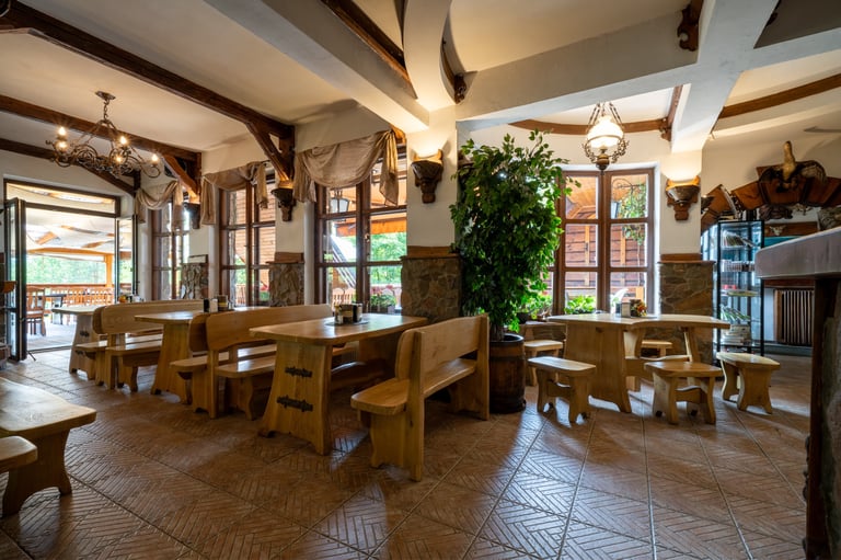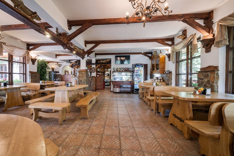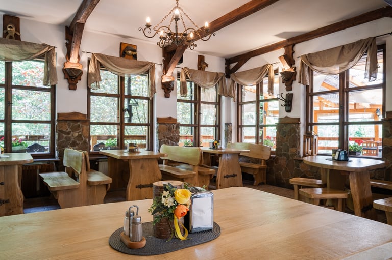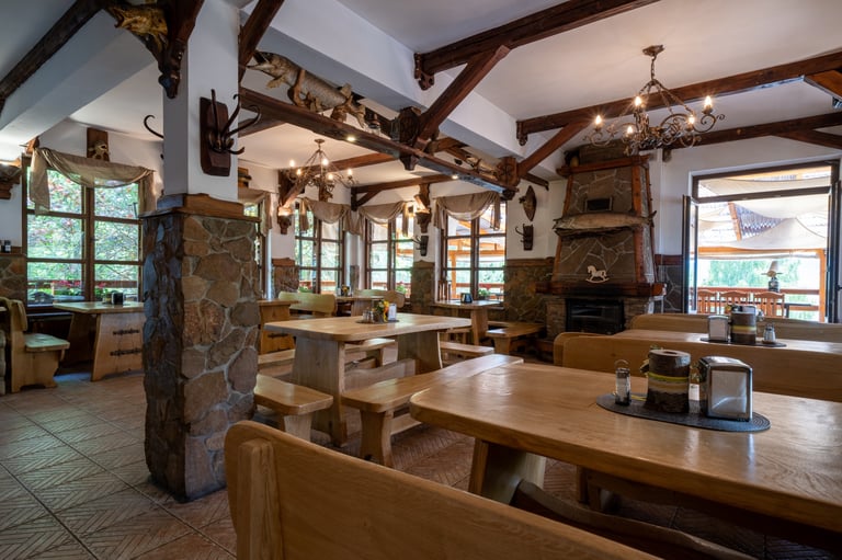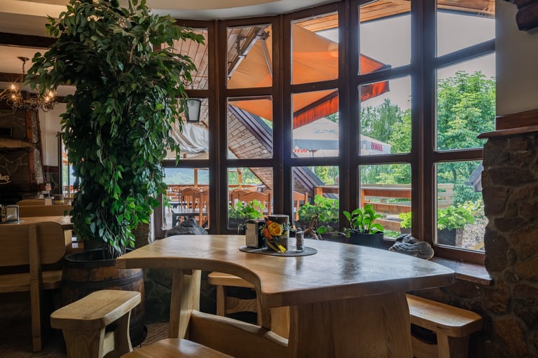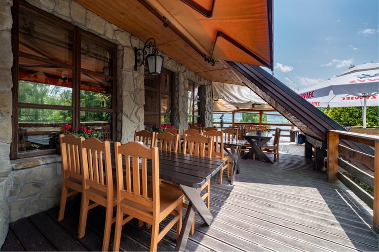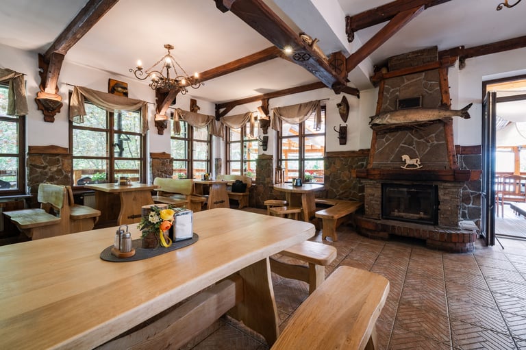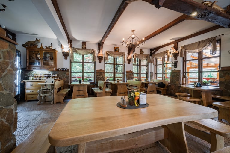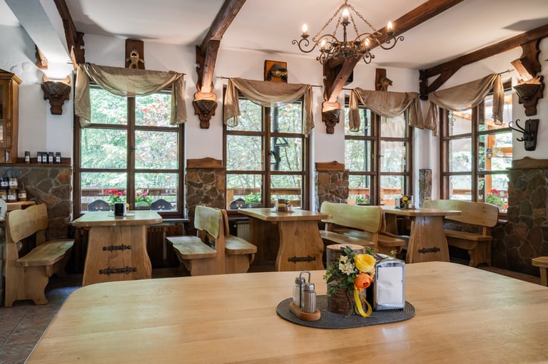 Zapraszamy do naszej restauracji, gdzie serwujemy pyszne dania w malowniczej scenerii z widokiem na góry i Jezioro Czorsztyńskie.